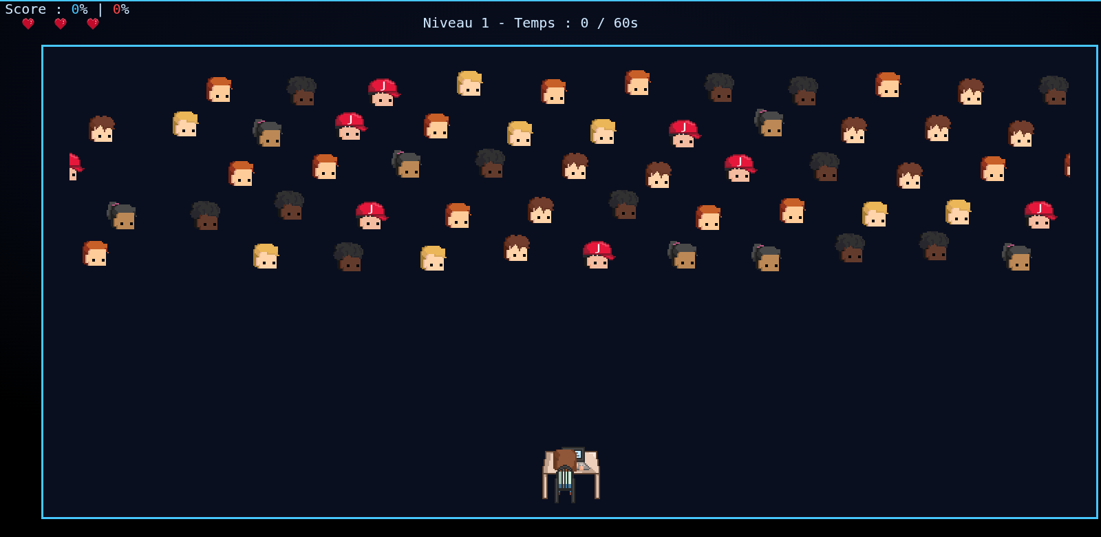 Le jeu est inspiré de Space Invaders : vous pouvez vous déplacer sur l'écran avec les flèches gauche et droite du clavier, et tirer avec la touche espace.